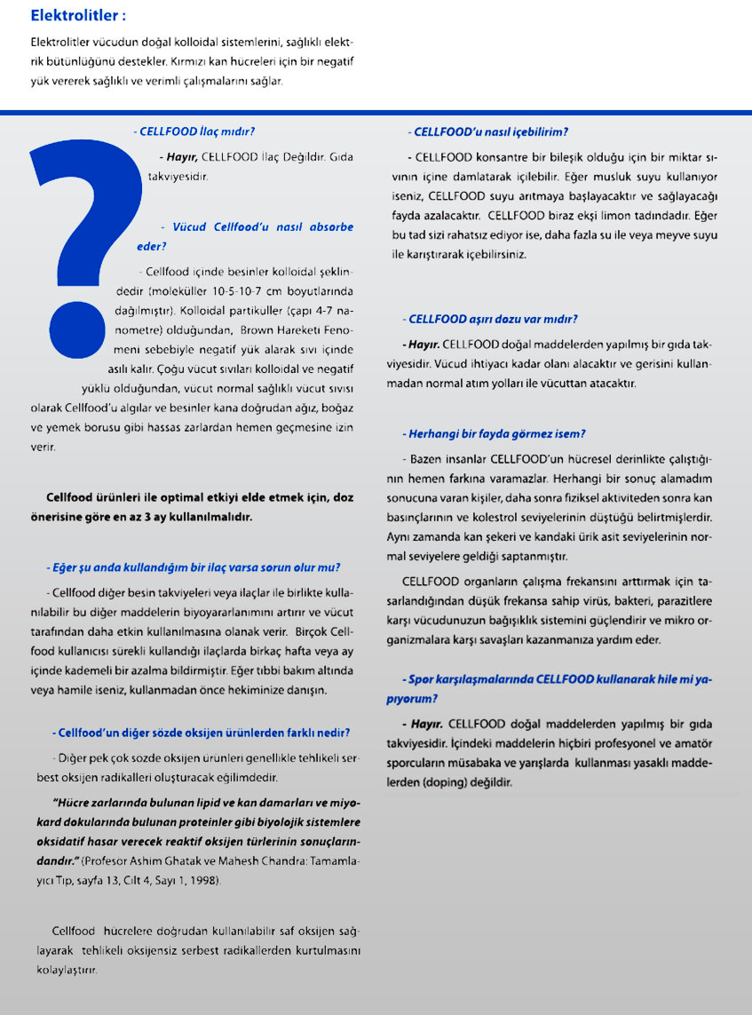 CELLFOOD ürünlerinin 01 Eylül 2016 tarihi itibarı ile